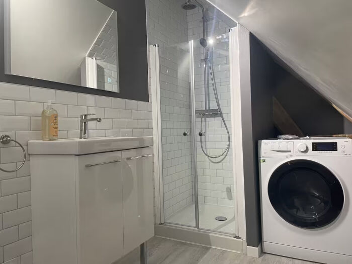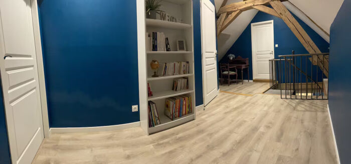 Le logement dispose d'une grande pièce principale de 90m² au rdc comprenant salon et cuisine équipée ouverte sur le séjour.