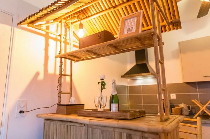 L’Évasion Nature est le 3e appartement Urban Spa. Il propose un univers relaxant avec mur végétal et boiserie inspiré de Bali en Indonésie.