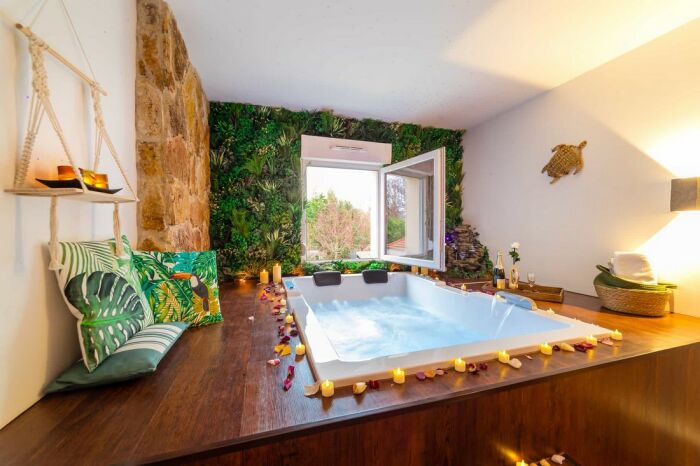 Vous y trouverez un confort optimal pour passer un séjour détente plein de dépaysement en amoureux. L’Évasion Nature propose un espace détente avec spa (balnéothérapie et sauna) entièrement privé.